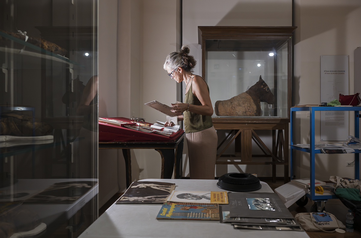 During her residency at Museo Egizio, Gloria Oyarzabal developed DIDASCALÍA (διδασκαλία), a research-based installation examining how museums construct and transmit knowledge. Taking its title from the Ancient Greek word for ‘instruction’, the work reflects on how historical narratives are shaped by power, ideology, and colonial legacies. Drawing from philosophical texts, archival materials, and museological debates, Oyarzabal questioned the Eurocentric frameworks that continue to define cultural institutions. Her installation integrated found objects from a Turin flea market, photographs, and textual fragments—repurposed materials that echo her critique of historical repetition and selective memory. Central to her reflection was the ethical dilemma surrounding the display of human remains, and how such practices reflect enduring hierarchies between cultures. Through DIDASCALÍA, Oyarzabal invited viewers to reconsider the authority of museums and to imagine new, more inclusive ways of exhibiting, interpreting, and caring for the past.