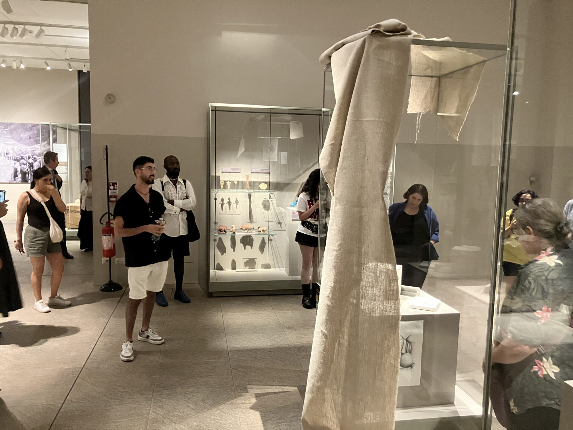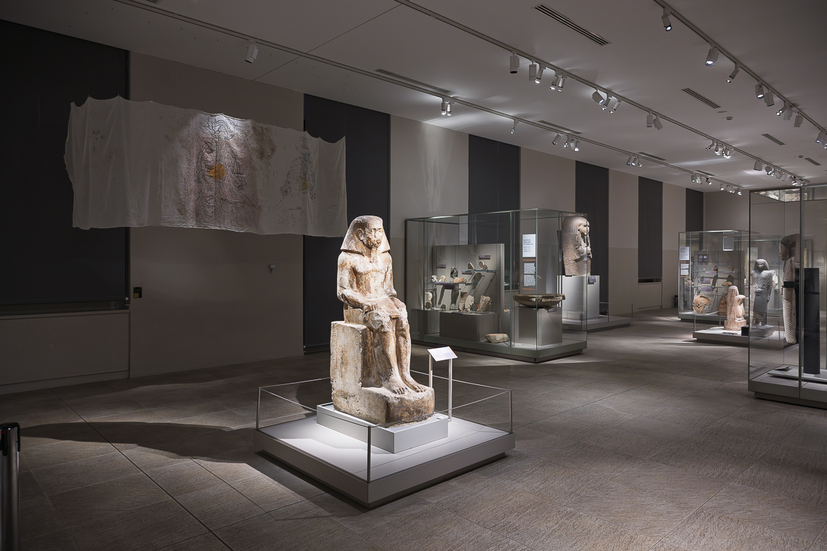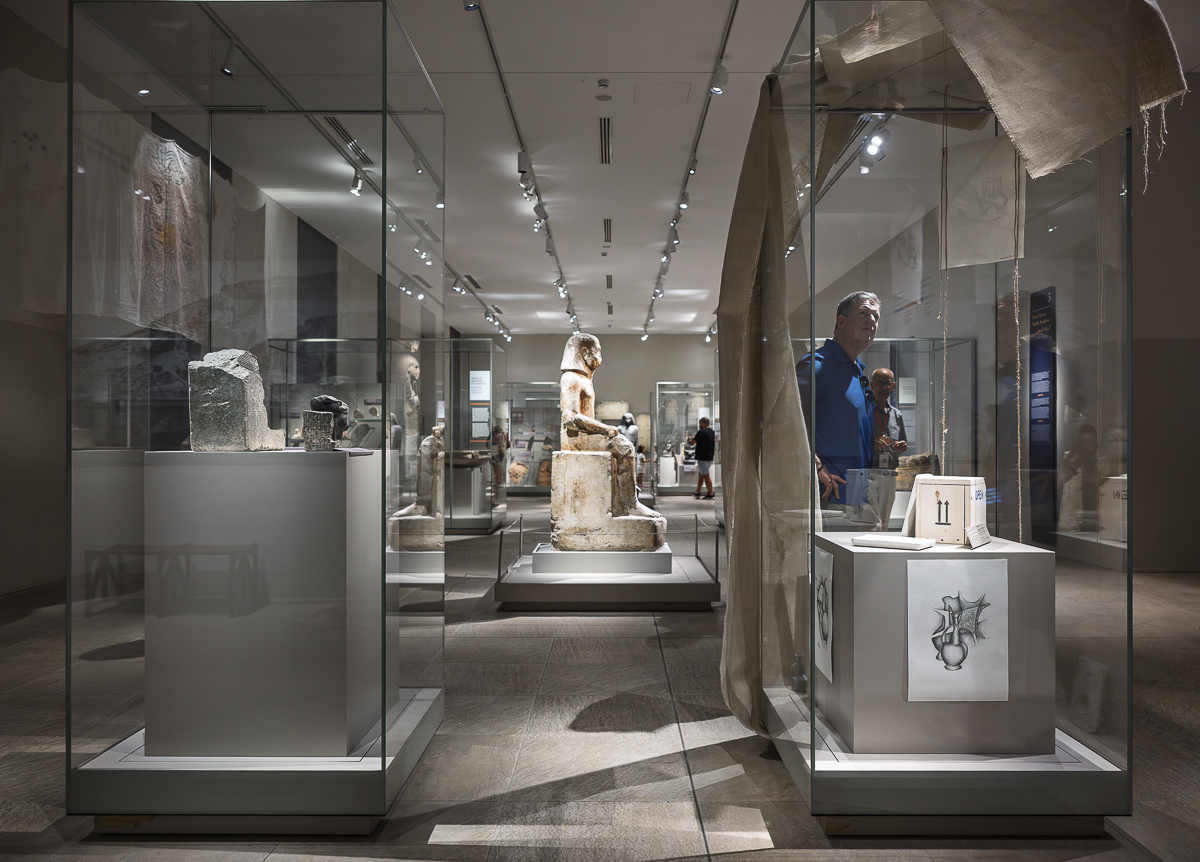 During his residency at Museo Egizio, Nicolas Kyrillou developed Show-Case, an installation reflecting on how museum displays both reveal and conceal meaning. Drawing inspiration from the historical relationship between Egypt and Alashiya (ancient Cyprus), he explored questions of absence, memory, and restitution. Using object moulds, rough textiles, and drawings, Kyrillou created a dialogue between what is shown and what remains hidden, inviting viewers to reflect on ownership and the ethics of display. The work also speaks to Cyprus’s complex colonial history and its enduring connections with Egypt, transforming the showcase into a metaphor for visibility, control, and loss. Installed within the galleries of the Middle Kingdom, Show-Case echoed the themes of decolonisation central to the residency, prompting visitors to consider how institutional narratives shape cultural memory. Kyrillou’s critical gesture revealed the emotional and political layers embedded in museum practices.
